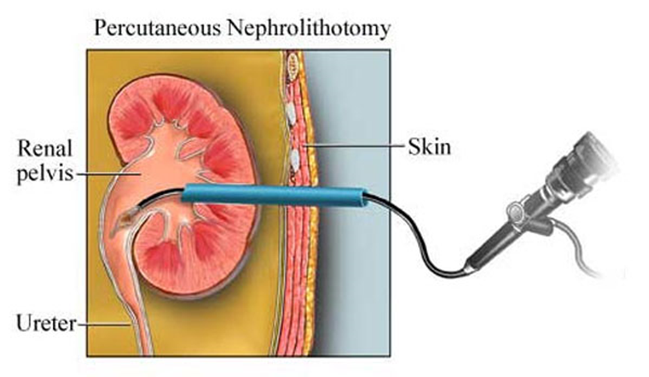 Est une chirurgie mini-invasive utilisée pour retirer de gros calculs rénaux (souvent > 2 cm) en passant par une petite incision dans le dos. Elle consiste à insérer un néphroscope (un tube avec une caméra) dans le rein pour localiser, fragmenter et enlever le calcul. Cette intervention nécessite généralement une anesthésie générale et une courte  hospitalisation de un à deux  jours.